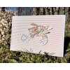 Přírodní ručně vyráběné mýdlo s kozím mlékem a zrníčky máku. Je v kombinaci bílé a čiré mýdlové hmoty. Čirá hmota je zabarvena do žluté barvy. Mýdlo je ve dvou variantách: s kozím mlékem a mákem nebo jen s kozím mlékem. Je zabaleno v krásném, ozdobném, papírovém sáčku, který je barven akrylovou barvou a je také poprskán bílou akrylovou barvou. Sáček je obšitý bílou nití a dozdoben duhovými flitry, které jsou také přišity. Celé dárkové balení krásně doplňuje loďka z papíru barvená bílou akrylovou barvou. Loďku doplňuje malé kartonové srdíčko v přírodní barvě. Vše dozdobují dvě dřevěné korálky v bílé barvě. Mydlíčko je uvnitř sáčku zabaleno v hedvábném papíru v dřevité vlně.